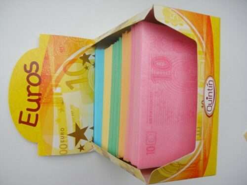 Des billets de banque (factices) en papier bonbon imprimés à l’encre alimentaire.
