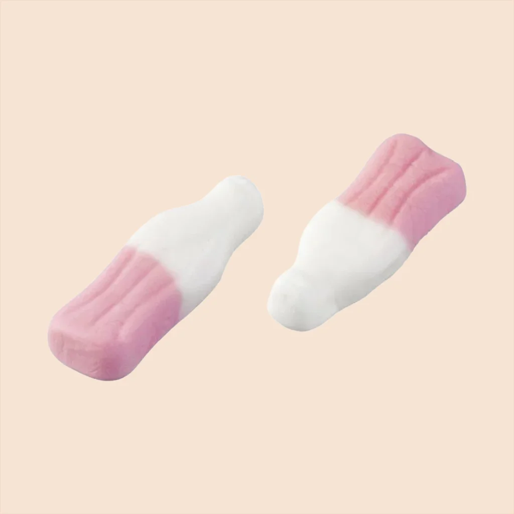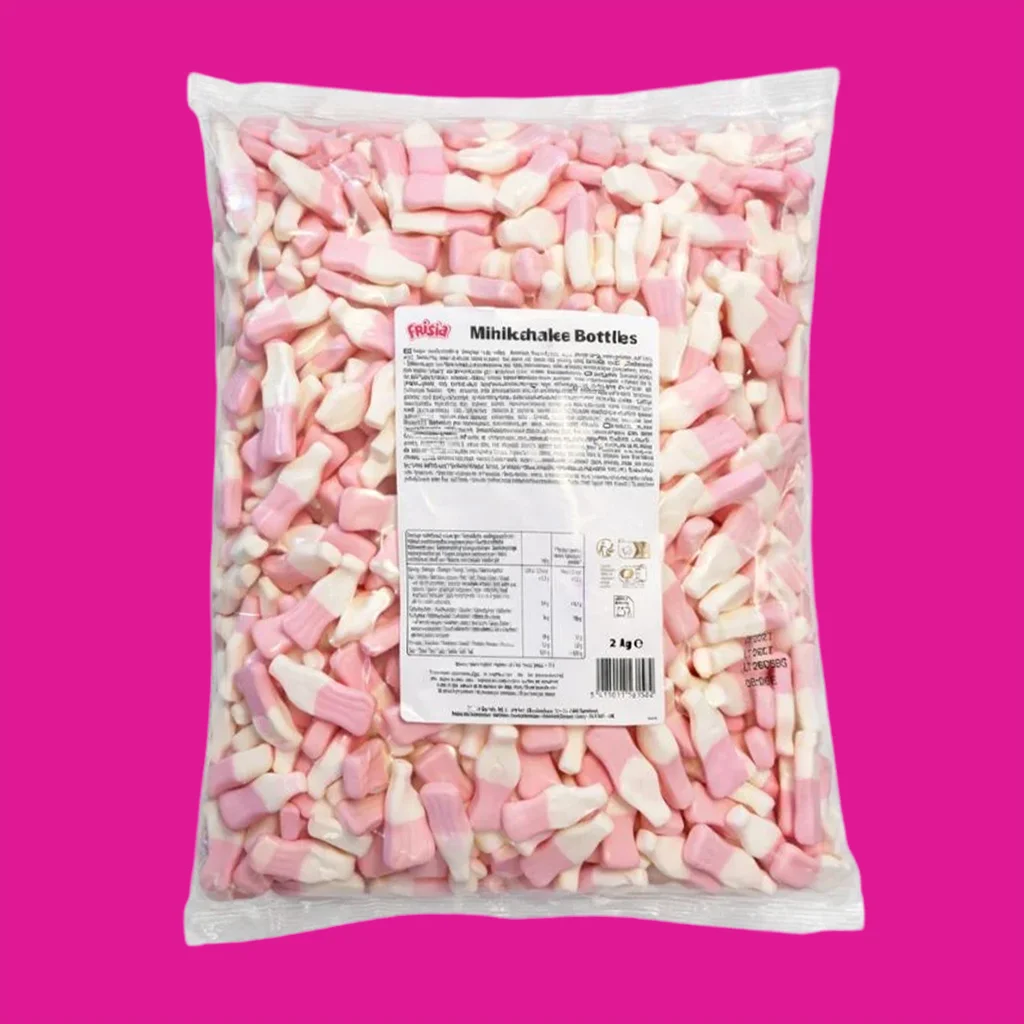 Bonbons Milkshake Bottles rose et blanc au goût véritable de milkshake !Retombez en enfance avec cette friandise originale pleine de douceur.