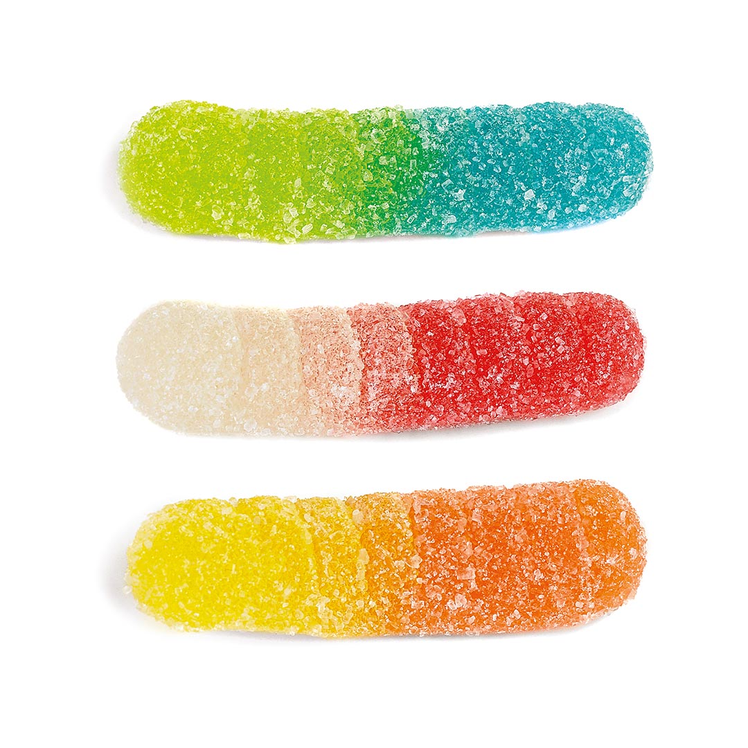 Glucose syrup, sugar, water, gelatine, acidifier: citric acid, flavours, colours: E100, E120, E131, E133 .